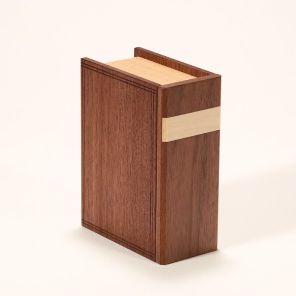 この作品は1983年に亀井によって創作された「本型からくり箱」(P-6-1)を大幅に改良したものです。