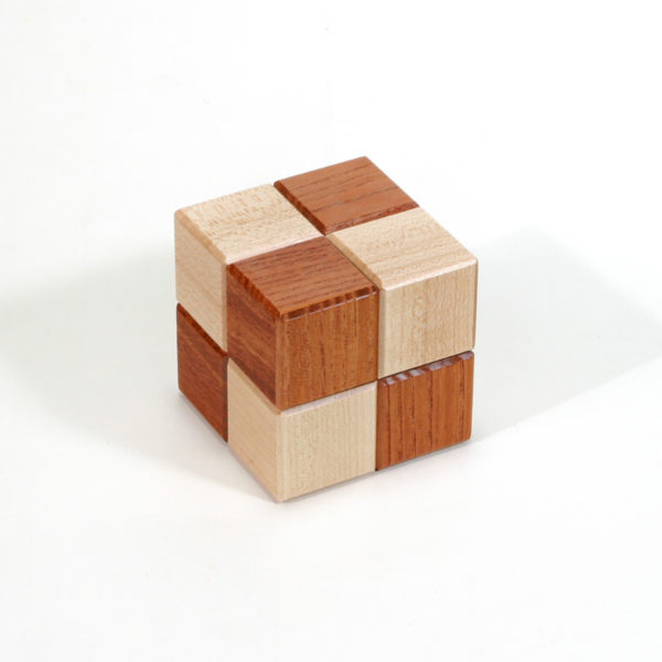 同じ形で4作品ありますが、これらは全て異なる動きをします。 秘密箱を発想の基本に置き、からくりの新しい動きを組み込みました。 どれも5手以内の作品ですが、あなたを程よく悩ませることでしょう!