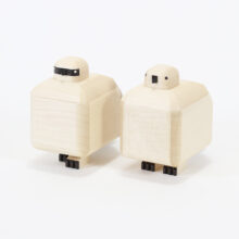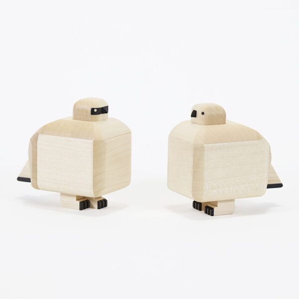 ライチョウのオスとメスを冬毛仕様でからくり箱にしました。それぞれ開け方が違います。