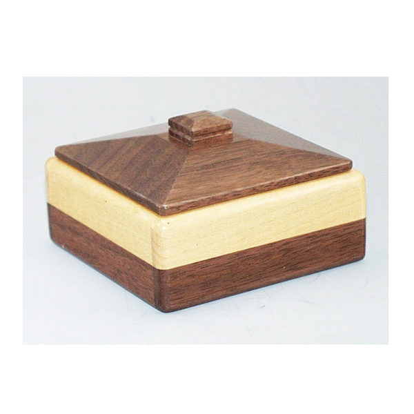 旧作(M-5-1)の縮小版です。 従来の箱の持つイメージからは想像できないような「動き」をします。 マグレで開く事はありません。 この反転型からくり箱は、努力しても無駄です。 「ひらめき」が重要なのです。