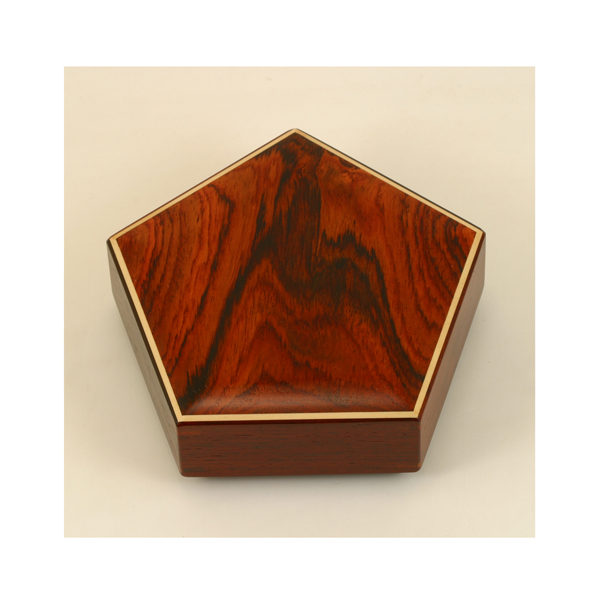 久しぶりに五角小箱を作りました。今回は材料に紫檀を使いました。また、内部構造も少し変更しました。ただ、開け方は旧作と同じです。