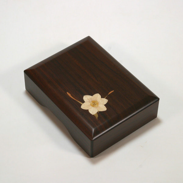 表面の象嵌は、桜花からくり箪笥(F-15)で象嵌を担当した蓮尾知子によるものです。