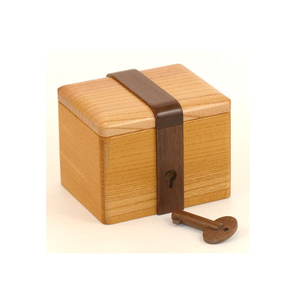 2003年夏に発表しました「鍵箱」の廉価版として開発されました。仕掛けはほぼ同じですが、ふたの開き方だけが違います。裏側には丁番もついているのですが・・・
