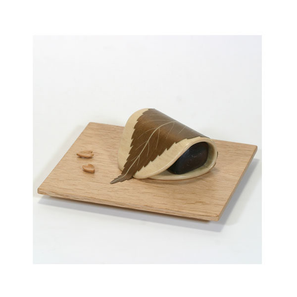 「春」をテーマとして「桜もち」です。桜の葉の木象嵌は内山春雄氏によるものです。さて、その木象嵌に仕掛けが・・・。