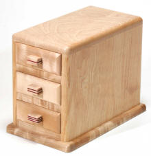 This is a familiar outlet. But of course this is a Karakuri Box. This mechanism is strange a little. Finally a tiny drawer will come out. When you lock this box, you have to make efforts a little. It's like squeezing paint from a tube. Created : 12/2006 Size : about 150 x 90 x 30 mm Material : oak, walnut, others |