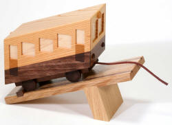 You can't drink hot miso soup in one sip. You must let it cool first. The delicious tofu and leek in the soup are also a part of the mechanism. There are two slits beside the Tofu. I can’t write any more than this without giving away the solution. Created : 08/2007 Size : 120 x 120 x 88 mm Material : cherry tree, walnut, etc. |