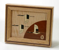 mechanism is the same as the old type. The wood inlay was made by Haruo Uchiyama who made the wood inlay of "Apricot" (P-36)(07/2002). Created : 02/2009 Size : 200×142×65 mm Material : walnut, oak, etc. |